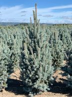 Zone 2-8. Grows to approximately 6’ x 2’ over 10 years. Upright, columnar tree with silver-blue needles.