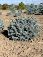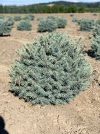 Zone 2-7. Grows to approximately 3’ x 3’ over 10 years. Dwarf, rounded tree with silvery-blue needles on compact branches.
