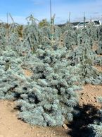 Zone 3-8. Grows to approximately 8’ x 3’ over 10 years. Weeping tree with bright, powder blue needles on irregular branching.